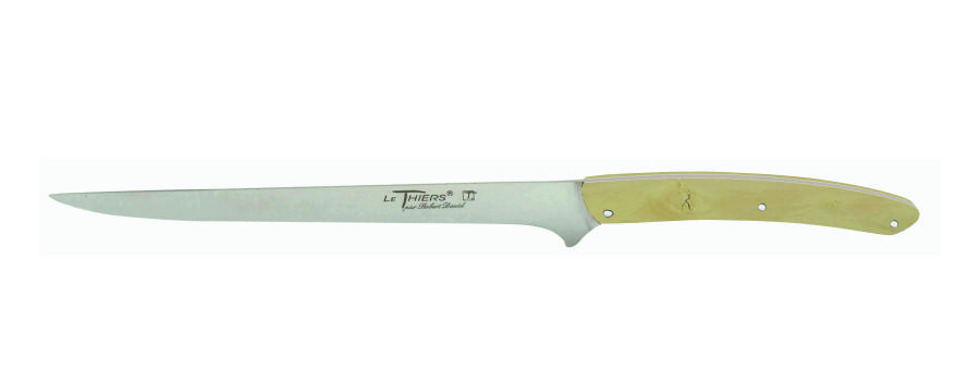 Our Kitchen collection offers a full range of high-quality knives, perfect for all your culinary preparations. Each knife, from the Thiers Bread Spreader to the Thiers Pizza Knife, is designed to provide performance and precision, whether you're slicing, dicing, or chopping. Models like the Thiers Office, the Thiers Cheese Knife, or the Thiers Kitchen Chef are perfect for those looking for high quality and precision knives. For more specific preparations, discover dedicated knives like the Thiers Japan Santuko, the Thiers Japan Nakiri, or the Thiers Sole Fillet. Each knife is carefully crafted in our workshops in Thiers, combining craftsmanship and modernity. Personalize your knives so they fit your needs and bring a unique and practical touch to your kitchen.