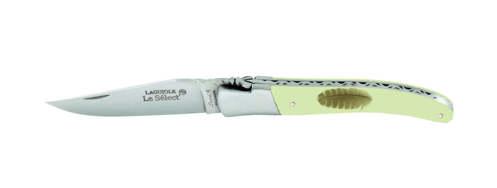 The Sélect'® is a knife that takes the shape and characteristics of the famous Laguiole. We have equipped it with a robust blade and a thicker handle. Its 'fly' is always forged. The forged fly is a guarantee of quality and solidity. In cutlery terms, the 'fly' is a protrusion at the end of the spring that is used to lock the blade.