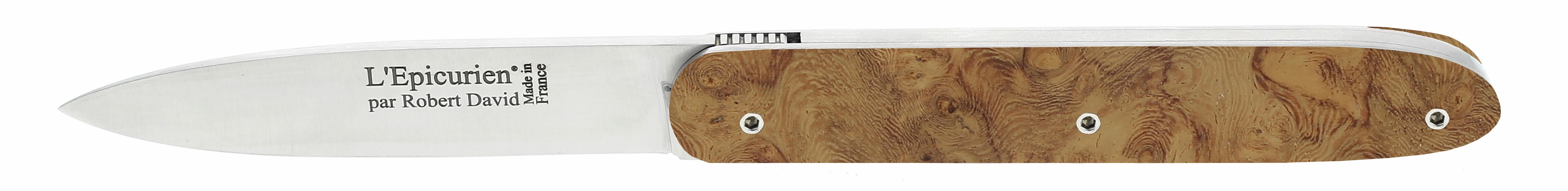 L'Épicurien® est une création Robert David, ce couteau est entièrement fabriqué de manière artisanale dans notre atelier à Thiers.