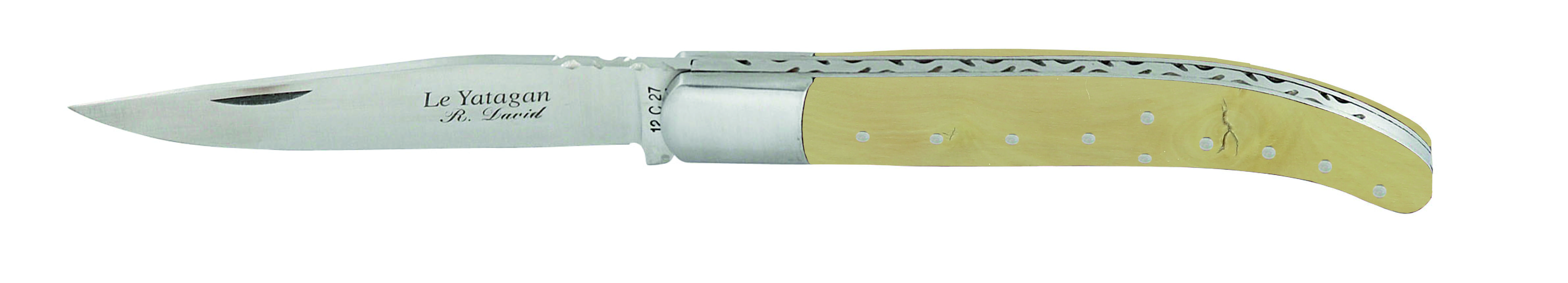 Le Yatagan Basque Robert David est un couteau de poche fabriqué artisanalement dans nos ateliers à Thiers, il est entièrement personnalisable, choisissez ses différents composants, nos artisans couteliers mettrons tout en œuvre pour fabriquer votre couteau sur mesure.