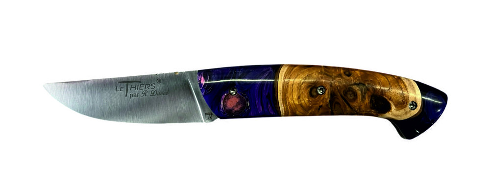 N'oubliez pas de sauvegarder votre personnalisation pour pouvoir l'ajouter au panierLe Thiers® Chasse une pièce est un couteau de poche robuste et trapu avec un mécanisme à cran forcé.